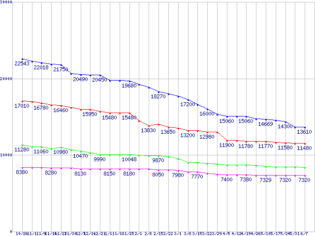 Deskstar 7K160 (7200rpm,SATA 3Gb/s)の最安値推移
