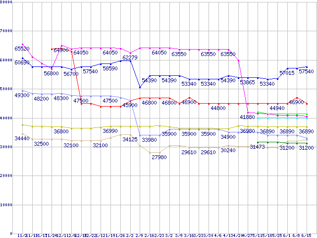 CPU主要製品(最安値3万円~6万円未満)の最安値推移