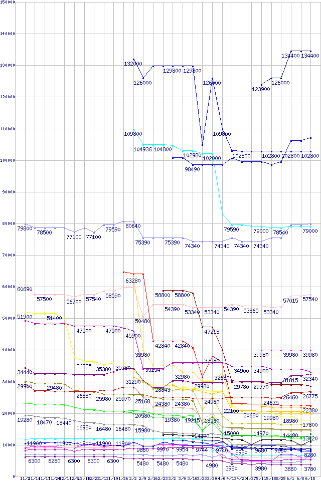 | AMD系CPUの最安値推移 | | | (2006年11月2日~2007年6月15日) |