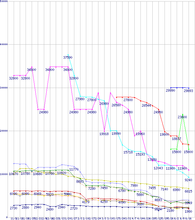 PC2-4200*(DDR2-533) DDR2 SDRAM DIMMの最安値推移