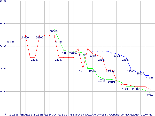メモリ主要製品の最安値推移