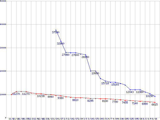 メモリ主要製品(最安値1万円以上)の最安値推移