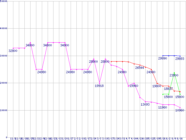 メモリ主要製品(最安値1万円以上)の最安値推移