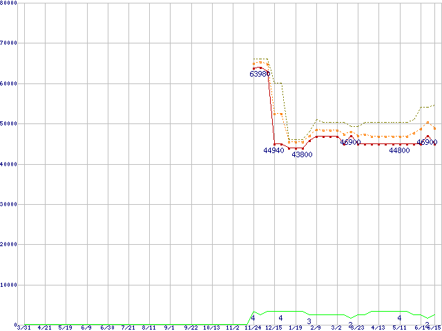 | Xeon E5310(1.60GHz)の価格推移 | | | (2006年3月31日~2007年6月15日) |
