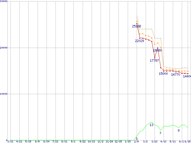 | Athlon 64 X2 4400+ (2.3GHz,L2 512KB×2,TDP65W)の価格推移 | | | (2006年3月31日~2007年6月15日) |