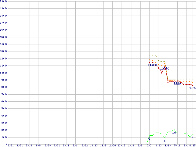 | Athlon 64 3500+ (2.2GHz,L2 512KB,TDP 45W)の価格推移 | | | (2006年3月31日~2007年6月15日) |