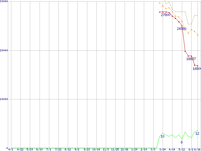 | PC2-6400 2GBの価格推移 | | | (2006年4月1日~2007年6月16日) |