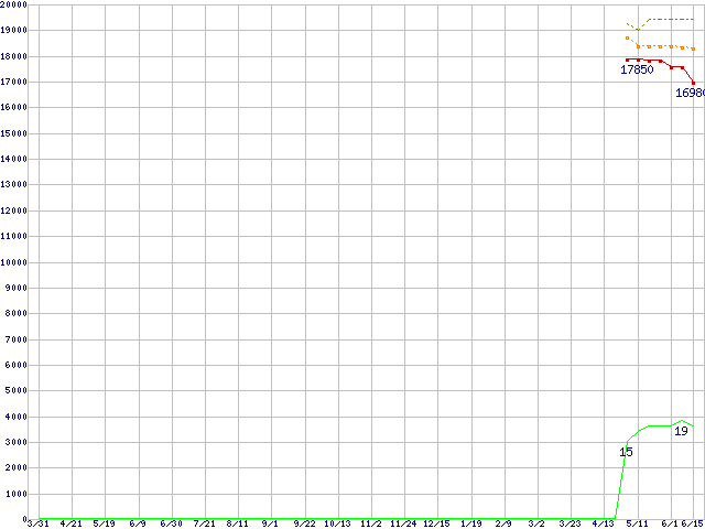 | Core 2 Duo E4400 (2GHz,L2 2MB)の価格推移 | | | (2006年3月31日~2007年6月15日) |
