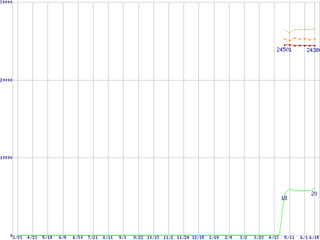 | Core 2 Duo E6420 (2.13GHz,L2 4MB)の価格推移 | | | (2006年3月31日~2007年6月15日) |