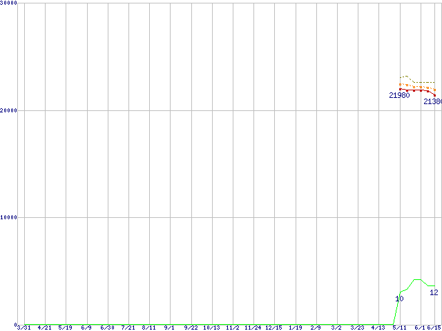 | Athlon 64 X2 5200+ (2.6GHz,L2 1MB×2,TDP65W)の価格推移 | | | (2006年3月31日~2007年6月15日) |