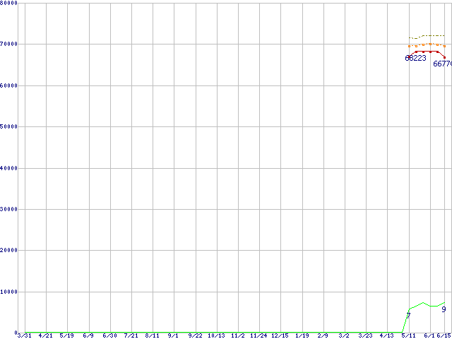 | Core 2 Duo T7700 (2.4GHz,L2 4MB)の価格推移 | | | (2006年3月31日~2007年6月15日) |
