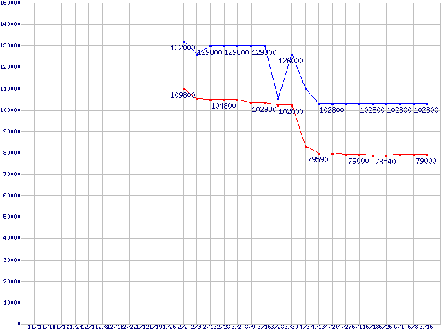 Socket F (FSB 1000MHz,Dual Core,L2 1MB×2)の最安値推移