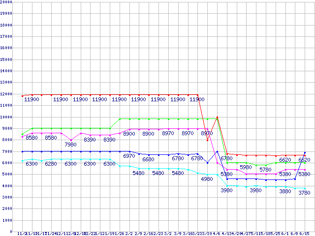 LGA775 (FSB 800MHz,L2 2MB,Hyper-Threading,EM64T対応)の最安値推移