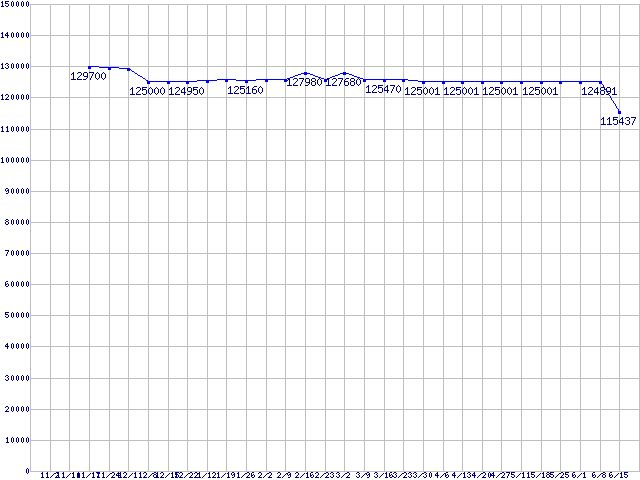| LGA775 (FSB 1066MHz,L2 4MB×2,Quad Core,EM64T対応,TDP 130W)の最安値推移 | | | (2006年11月2日~2007年6月15日) |