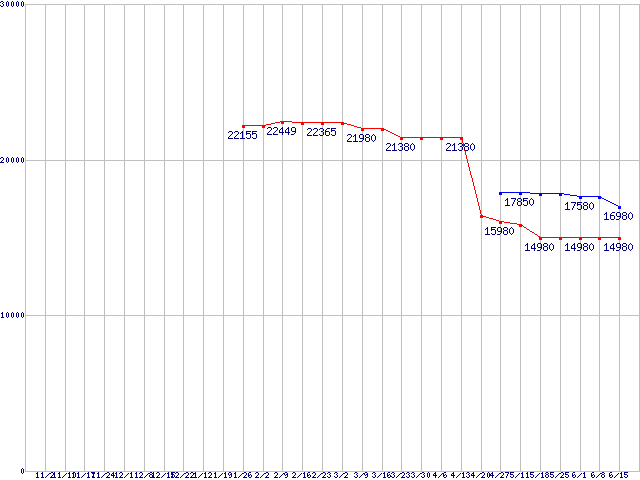 FSB 800MHz対応Core 2 Duo向けSocket (FSB 800MHz,Dual Core,EM64T対応)の最安値推移