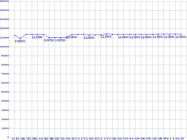 | LGA771(FSB 1333MHz,Dual Core,L2 4MB)の最安値推移 | | | (2006年11月2日~2007年6月15日) |