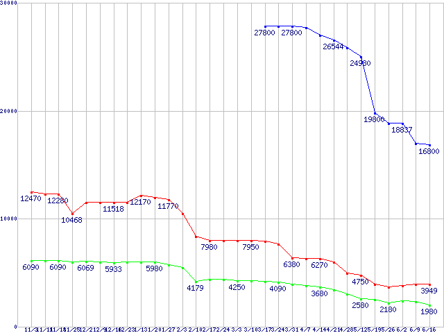 PC2-6400(DDR2-800) DDR2 SDRAM DIMMの最安値推移