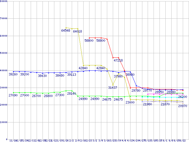CPU主要製品(最安値3万円~6万円未満)の最安値推移