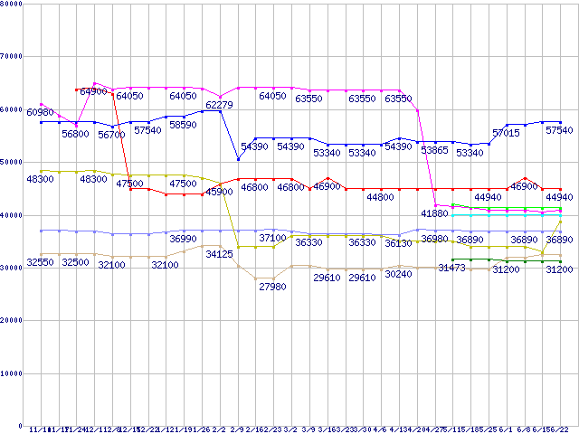 CPU主要製品(最安値3万円~6万円未満)の最安値推移