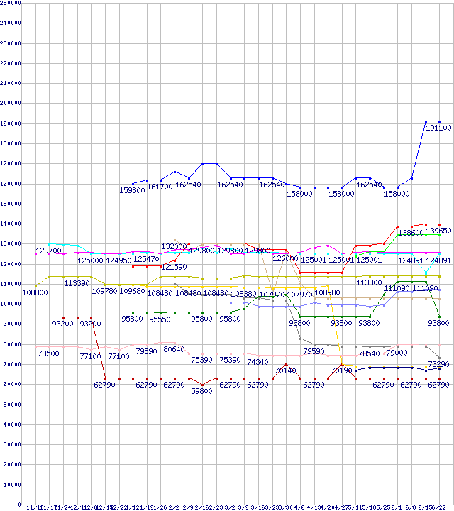 CPU主要製品(最安値3万円~6万円未満)の最安値推移