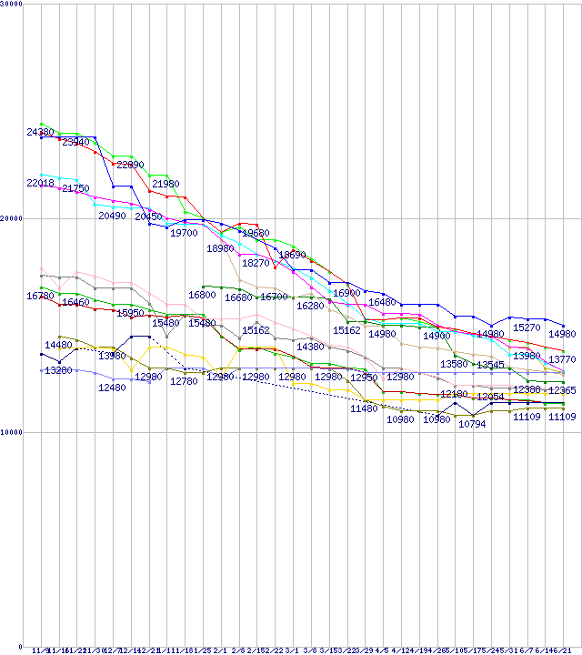 ※製品名をクリックすると個別のグラフを表示します ※点線部は販売店が確認できなかった、または調査データがないことを示します |