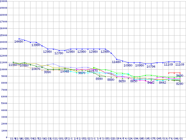 ※点線部は販売店が確認できなかった、または調査データがないことを示します