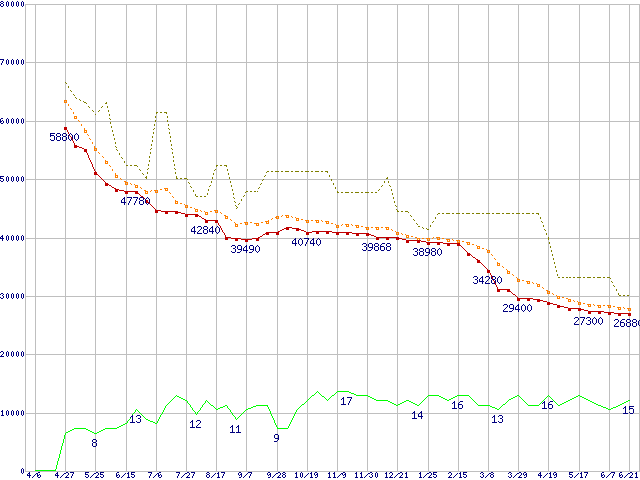 | ST3750640AS (750GB,16MB)の価格推移 | | | (2006年4月6日~2007年6月21日) |