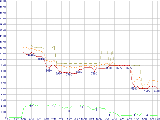 | Sempron 3400+ (1.8GHz,L2 256KB)の価格推移 | | | (2006年4月7日~2007年6月22日) |