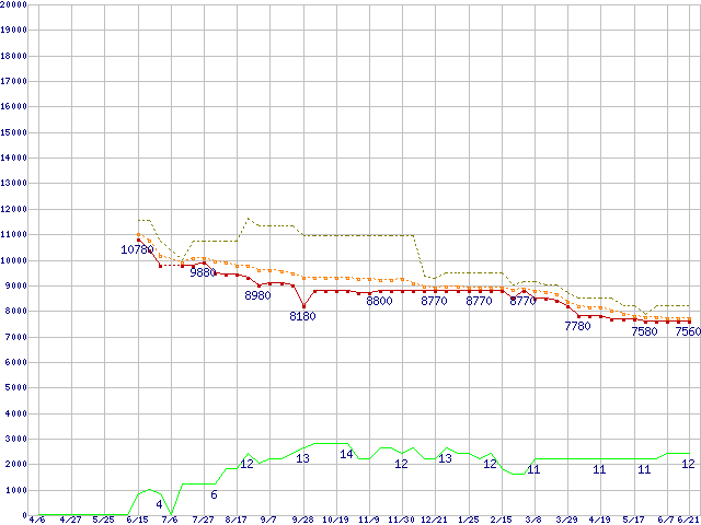 | ST3250620A (250GB,16MB)の価格推移 | | | (2006年4月6日~2007年6月21日) |
