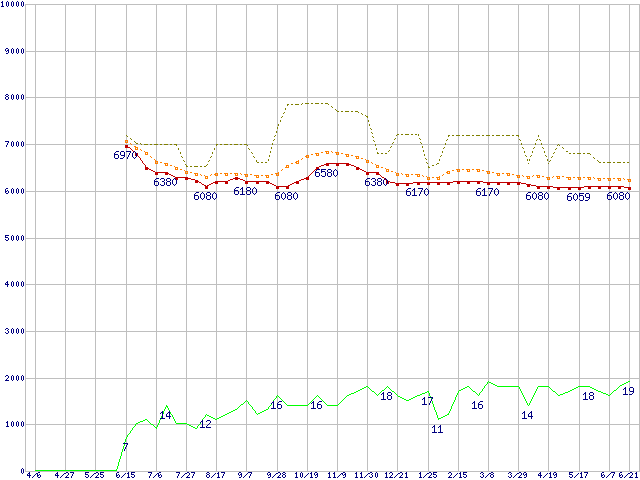| HDS721616PLA380 (160GB,8MB)の価格推移 | | | (2006年4月6日~2007年6月21日) |