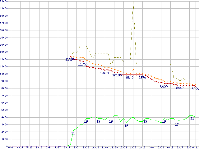 | HDT725032VLAT80 (320GB,8MB)の価格推移 | | | (2006年4月6日~2007年6月21日) |