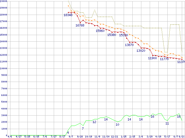 | HDT725040VLAT80 (400GB,8MB)の価格推移 | | | (2006年4月6日~2007年6月21日) |