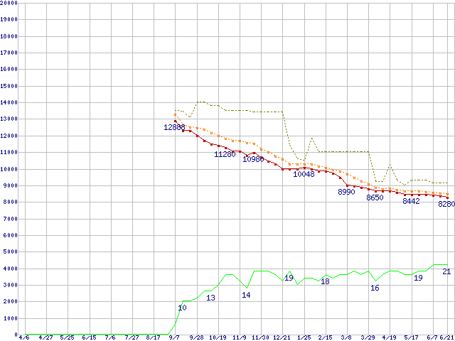 | HDT725032VLA360 (320GB,16MB)の価格推移 | | | (2006年4月6日~2007年6月21日) |