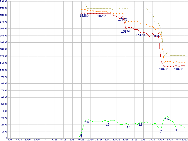 | Pentium D 925 (3.0GHz)の価格推移 | | | (2006年4月7日~2007年6月22日) |