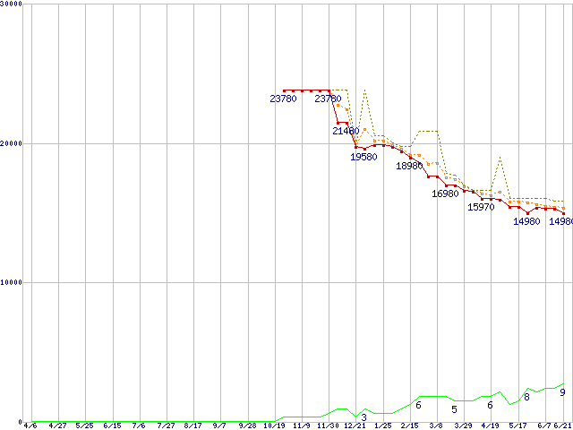 | ST3400620NS (400GB,16MB)の価格推移 | | | (2006年4月6日~2007年6月21日) |