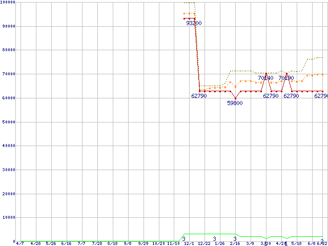 | Xeon E5320(1.86GHz)の価格推移 | | | (2006年4月7日~2007年6月22日) |