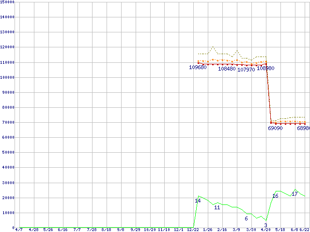 | Core 2 Quad Q6600 (2.40GHz,L2 4MB×2)の価格推移 | | | (2006年4月7日~2007年6月22日) |