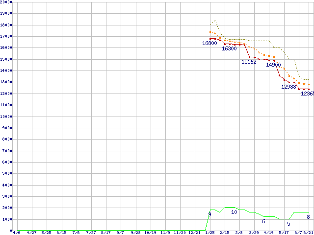 | HD501LJ (500GB,16MB)の価格推移 | | | (2006年4月6日~2007年6月21日) |