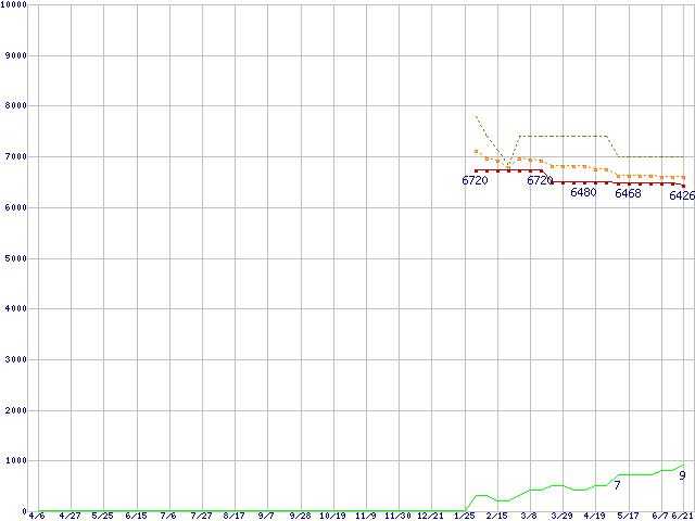 | ST3160815A (160GB,8MB)の価格推移 | | | (2006年4月6日~2007年6月21日) |