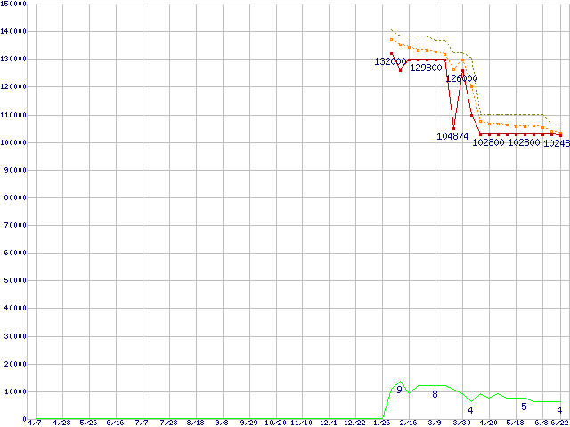 | Athlon 64 FX-74 (3.0GHz) ※2個セットの価格の価格推移 | | | (2006年4月7日~2007年6月22日) |