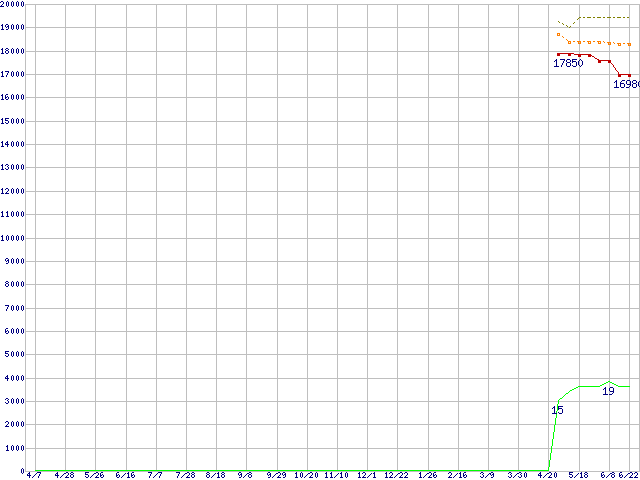 | Core 2 Duo E4400 (2GHz,L2 2MB)の価格推移 | | | (2006年4月7日~2007年6月22日) |