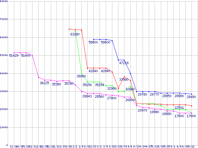 Socket AM2 (FSB 1000MHz,Dual Core,TDP65W)の最安値推移