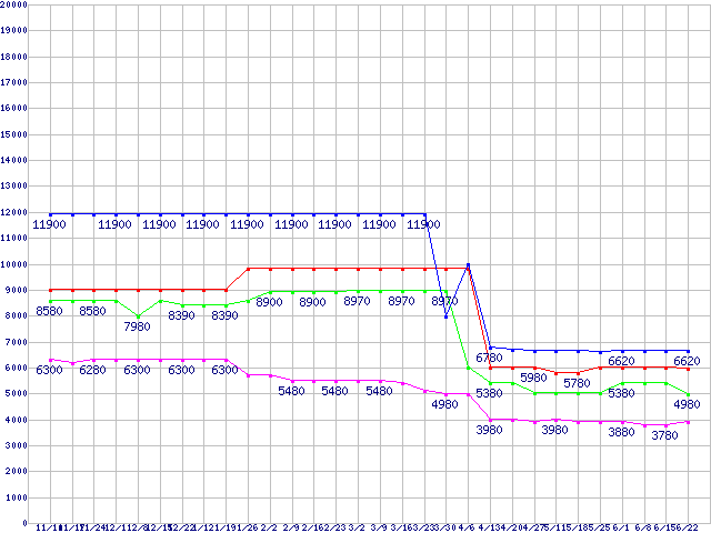 Socket AM2 (FSB 800MHz)の最安値推移
