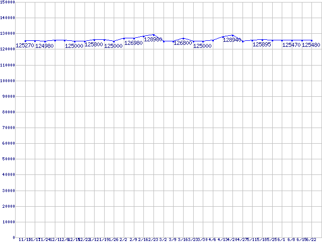 | LGA775 (FSB 1066MHz,L2 4MB,Dual Core,EM64T対応,TDP 75W)の最安値推移 | | | (2006年11月10日~2007年6月22日) |