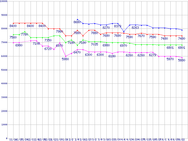 LGA775 (FSB 800MHz,L2 512KB,EM64T対応)の最安値推移