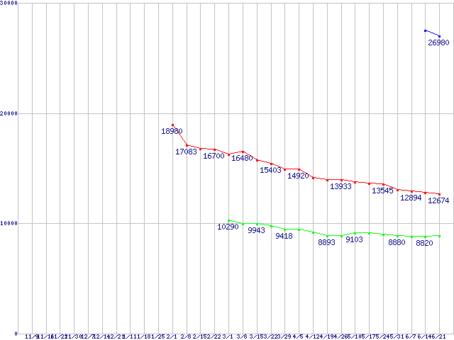 WD Raptor (10000rpm,SATA 1.5Gb/s,16MB,NCQ)の最安値推移