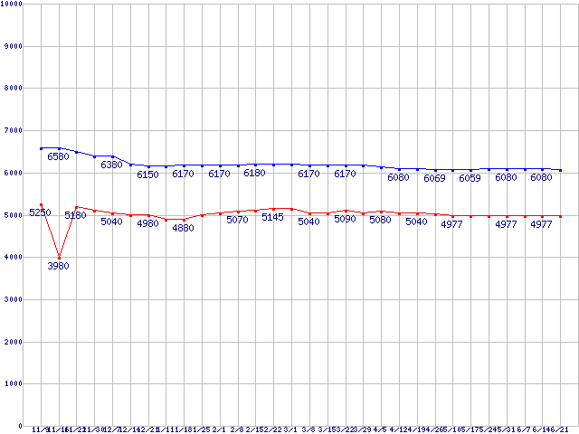 Deskstar T7K500 (7200rpm,Ultra ATA/133)の最安値推移