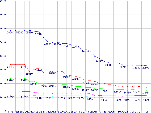 Barracuda 7200.10 (7200rpm,Ultra ATA/100)の最安値推移