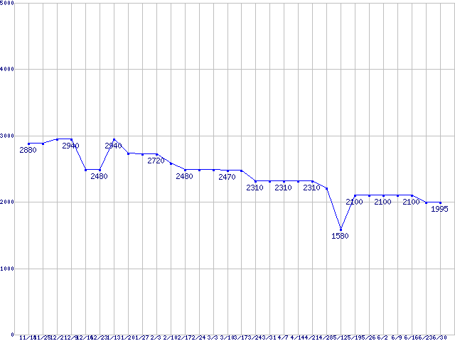 | 256MBモジュールの最安値推移 | | | (2006年11月18日~2007年6月30日) |
