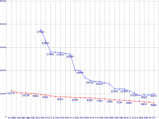 メモリ主要製品(最安値5千円~1万円未満)の最安値推移